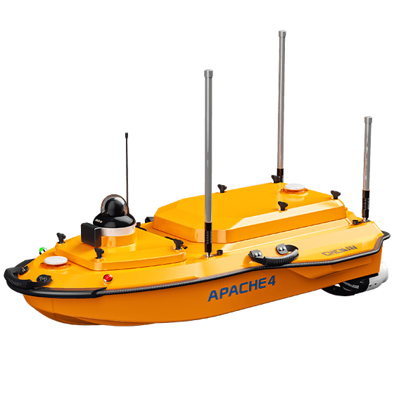 The APACHE 4 USV is optimized for hydrological studies, supporting a range of ADCP and compact multi-beam systems. Its shallow draft, high accuracy, and stable hovering make it ideal for measuring water flow velocity and discharge. Compact and easy to handle, it ensures effortless site management, safe launches, and convenient car transport. With integrated GNSS+IMU technology, it provides reliable positioning and heading, enhancing ADCP and autopilot functionality for precise water flow analysis.
